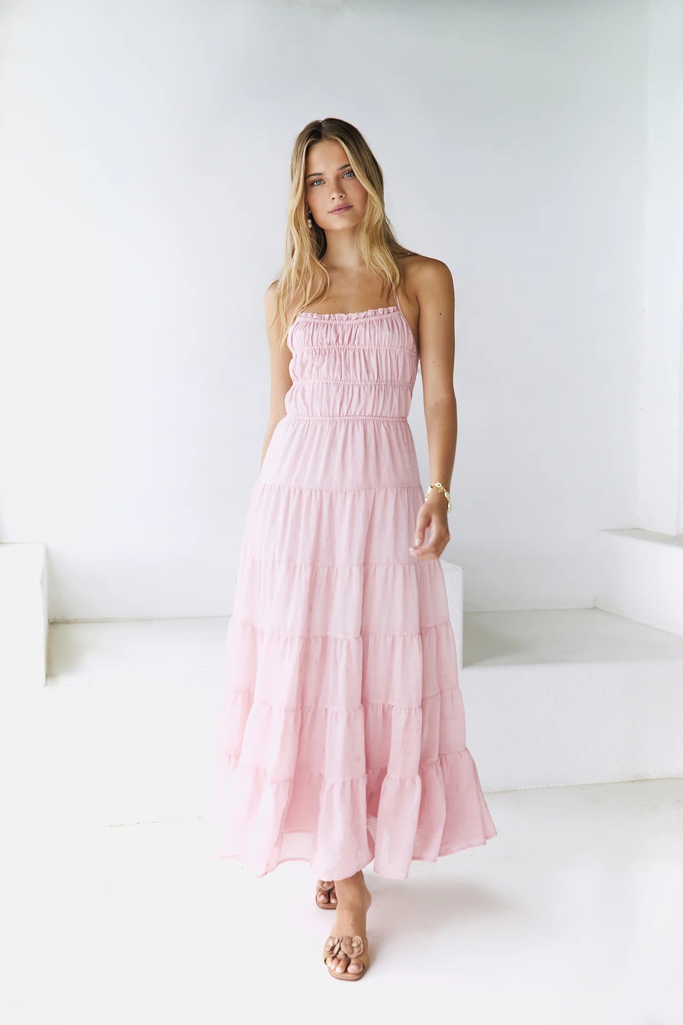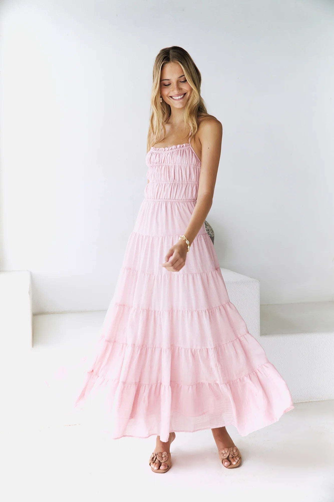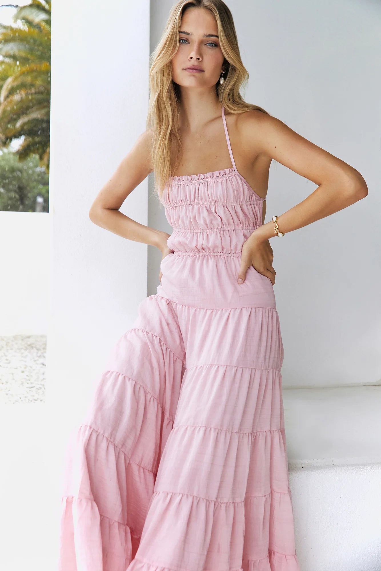 Step into timeless elegance with our Renaissance Art Maxi Dress in Pink. Whether you're attending a garden wedding or exploring historic landmarks, this dress exudes sophistication and grace. Style with black heels and gold adornments to elevate the look.