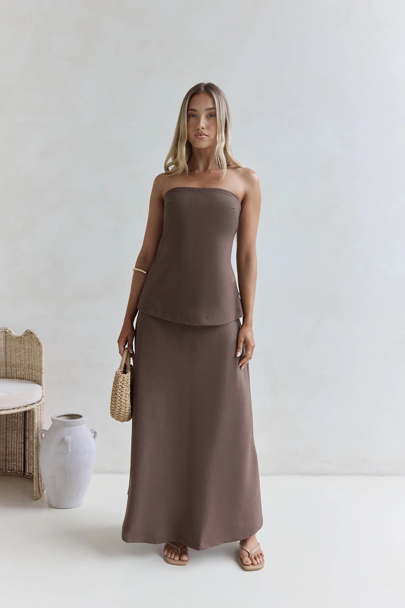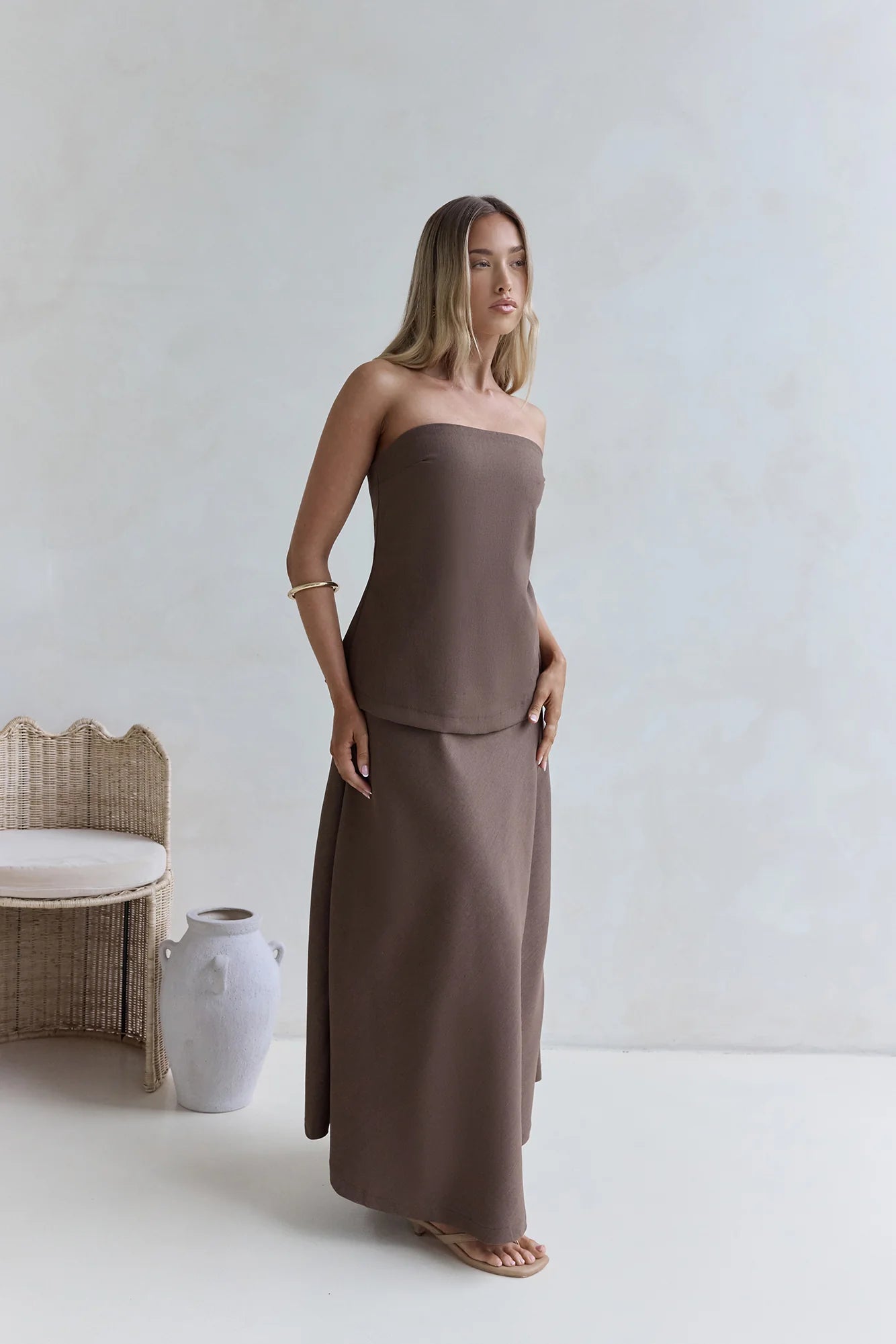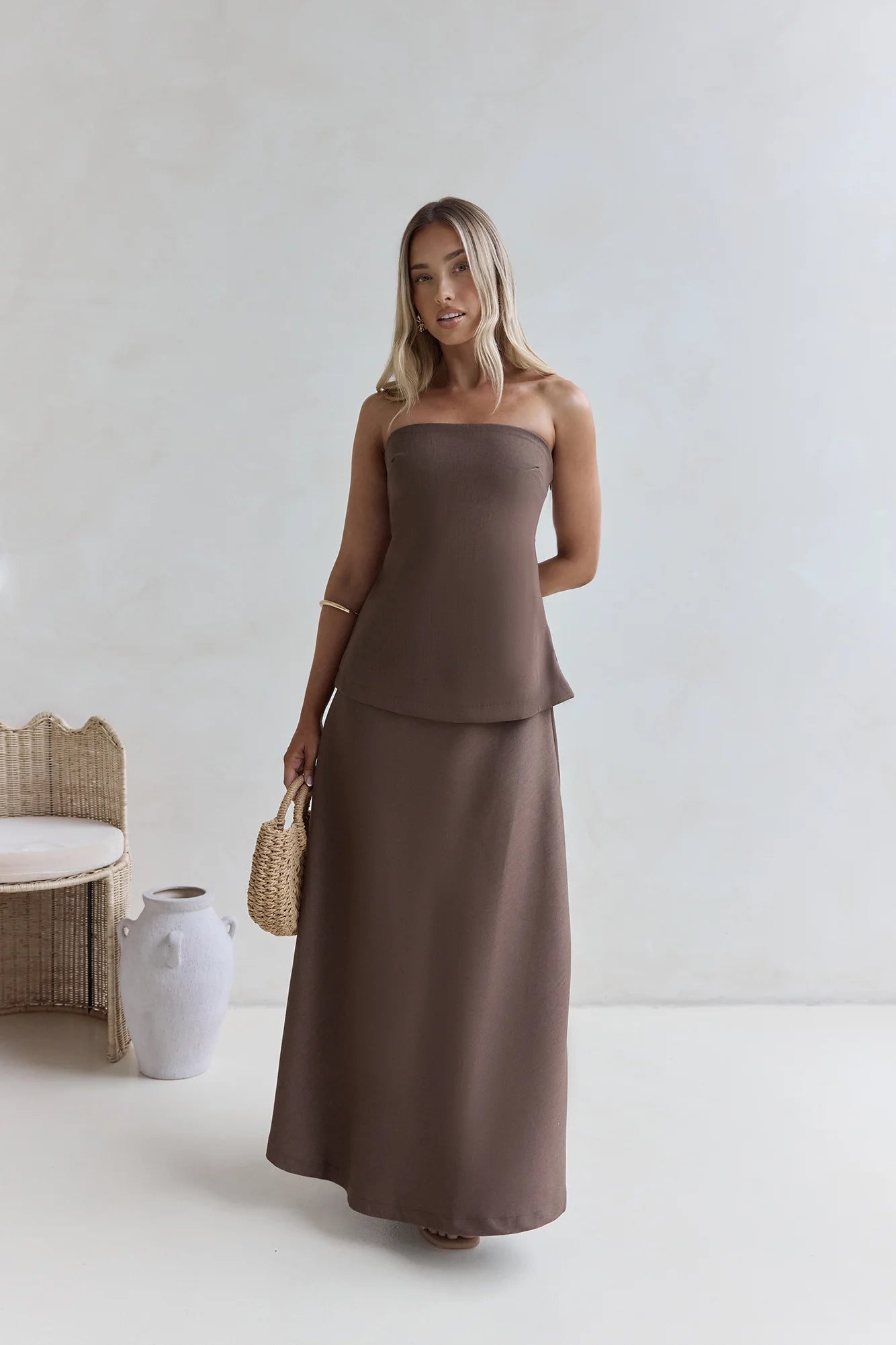 A chic silhouette guaranteed to turn heads, the Ring The Bell Strapless Maxi Dress is the statement piece your wardrobe needs for your next city escape. Style with strappy sandals and a clutch.