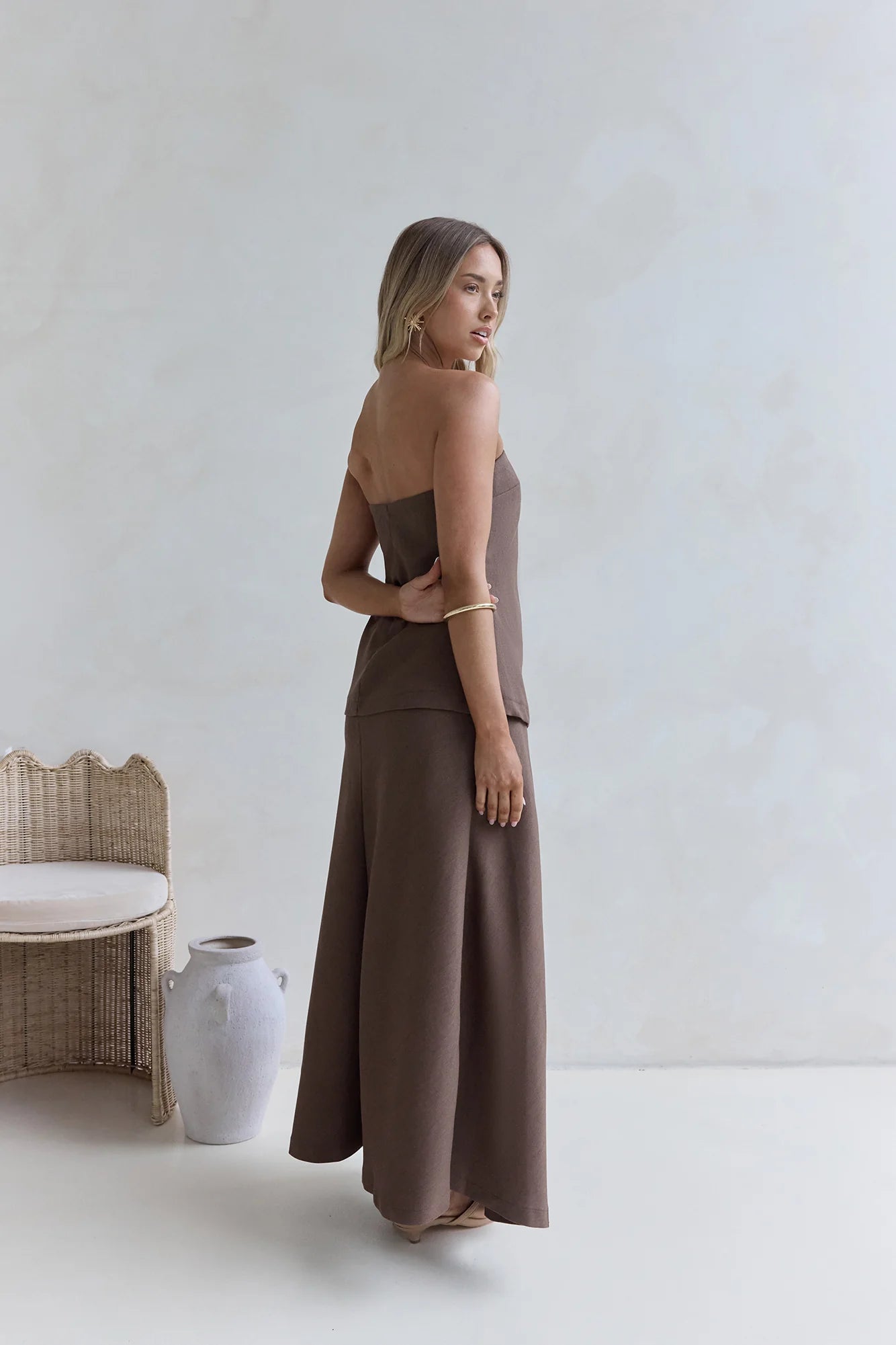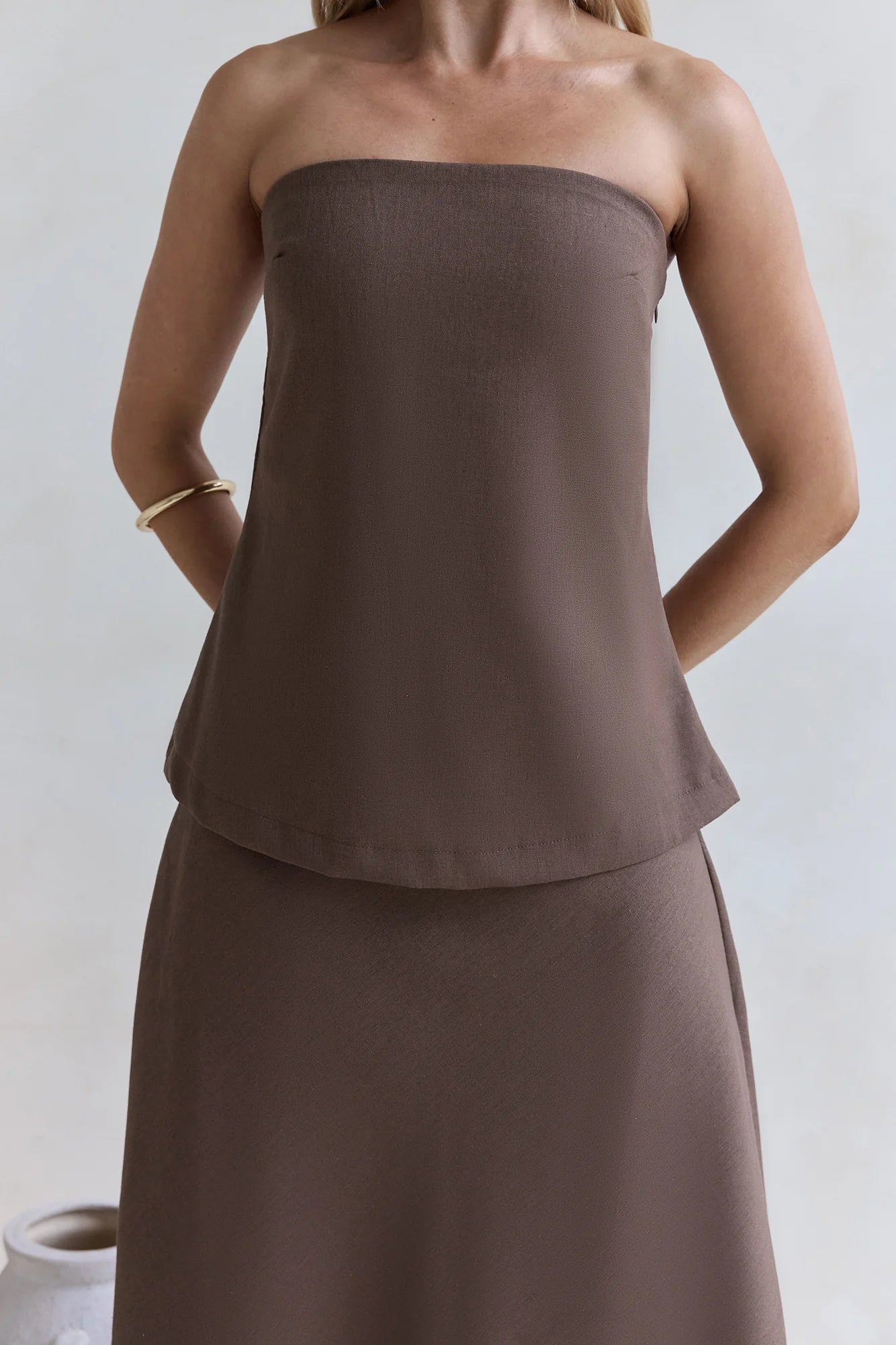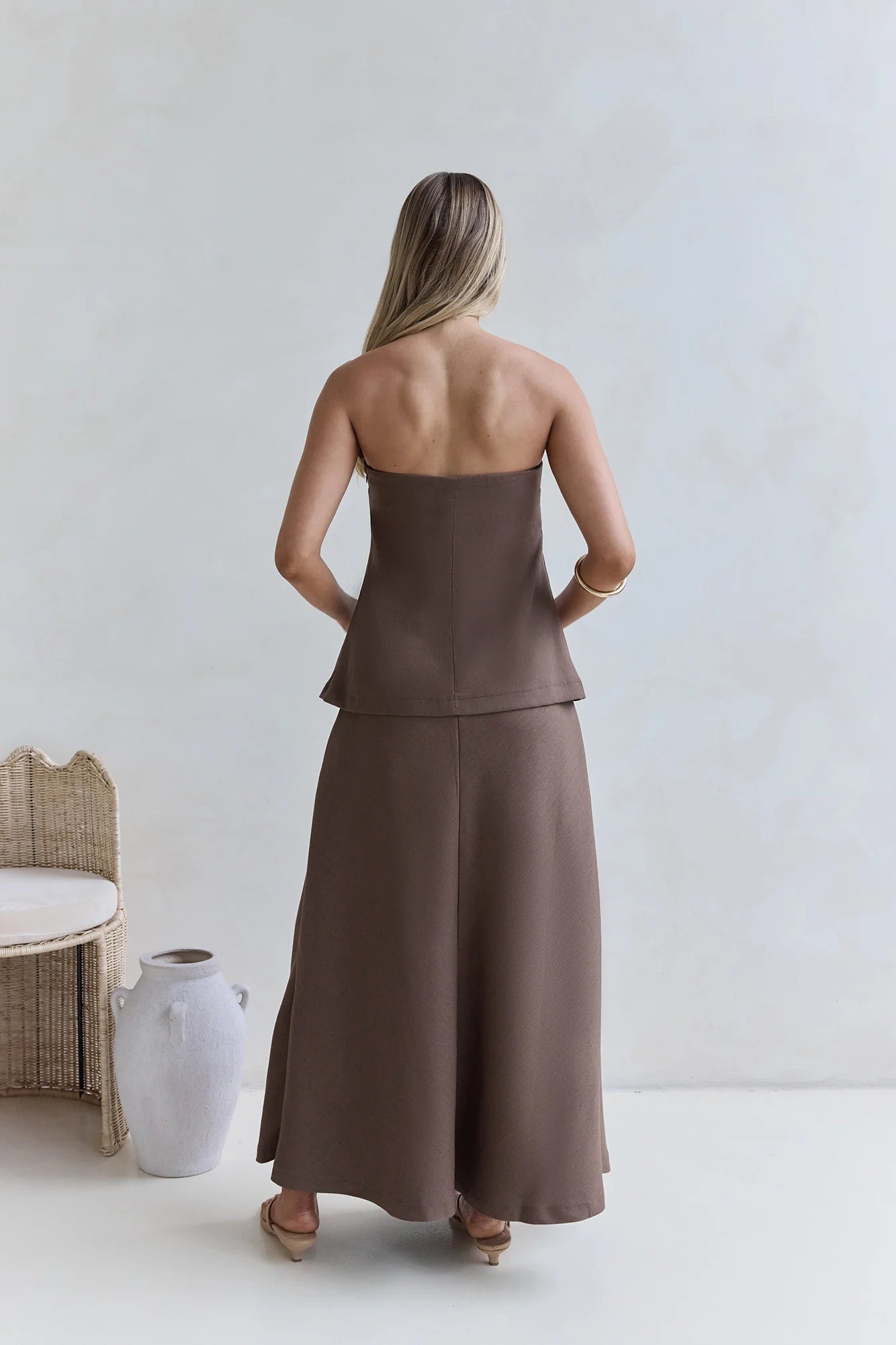 A chic silhouette guaranteed to turn heads, the Ring The Bell Strapless Maxi Dress is the statement piece your wardrobe needs for your next city escape. Style with strappy sandals and a clutch.
