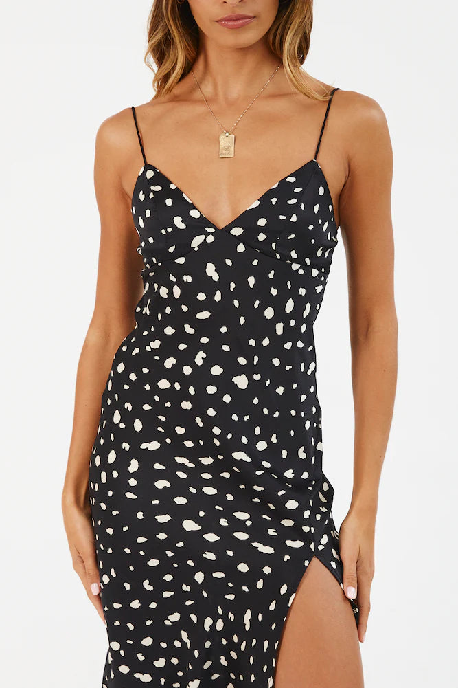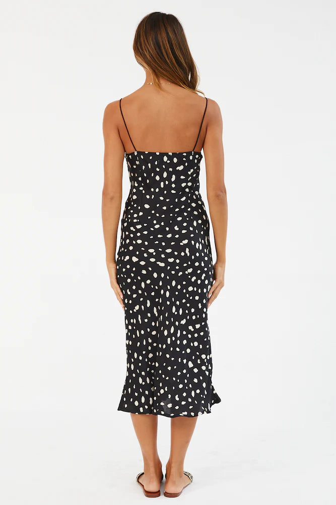 We're feeling the vibes this spring in the Rolling Straight Midi Dress! Style yours with gold adornments and heeled mules as you get ready to dance all night.