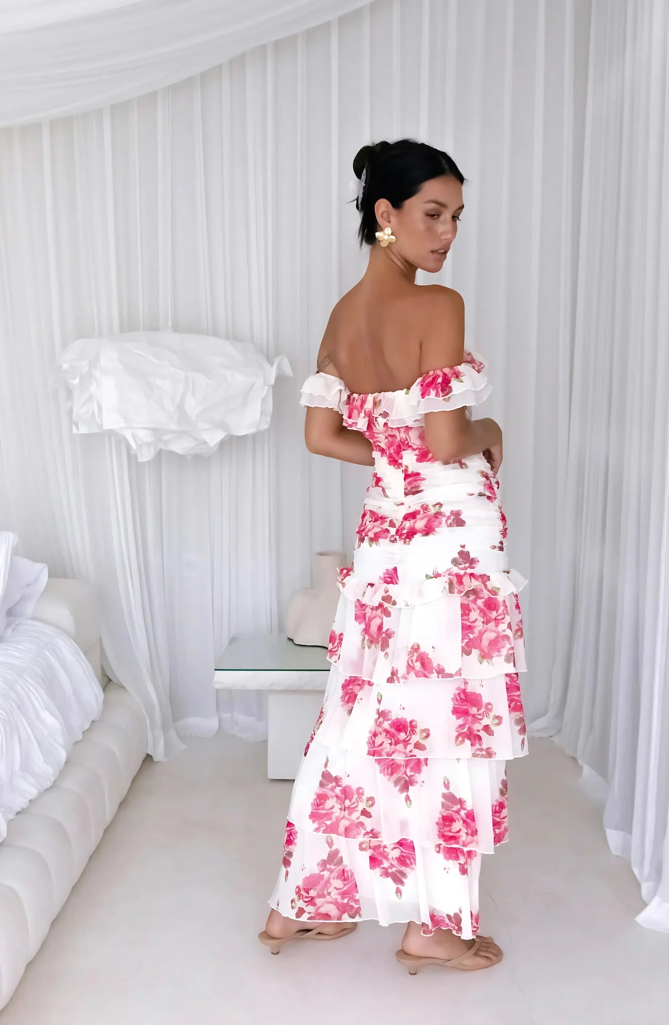Perfect for sunlit garden parties or moonlit soirées, this gown is all about celebrating femininity and the beauty of nature.