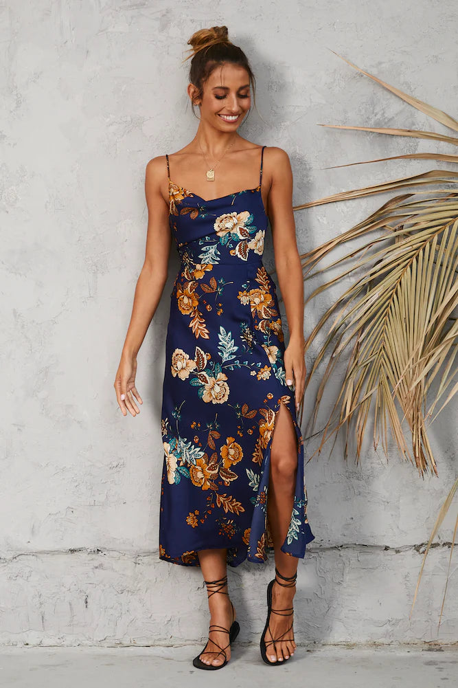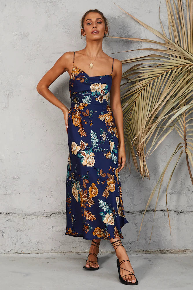 The Round The World Maxi Dress has us feeling red-carpet-ready for those cool evenings in New York! Style yours with neutral heels and gold adornments.