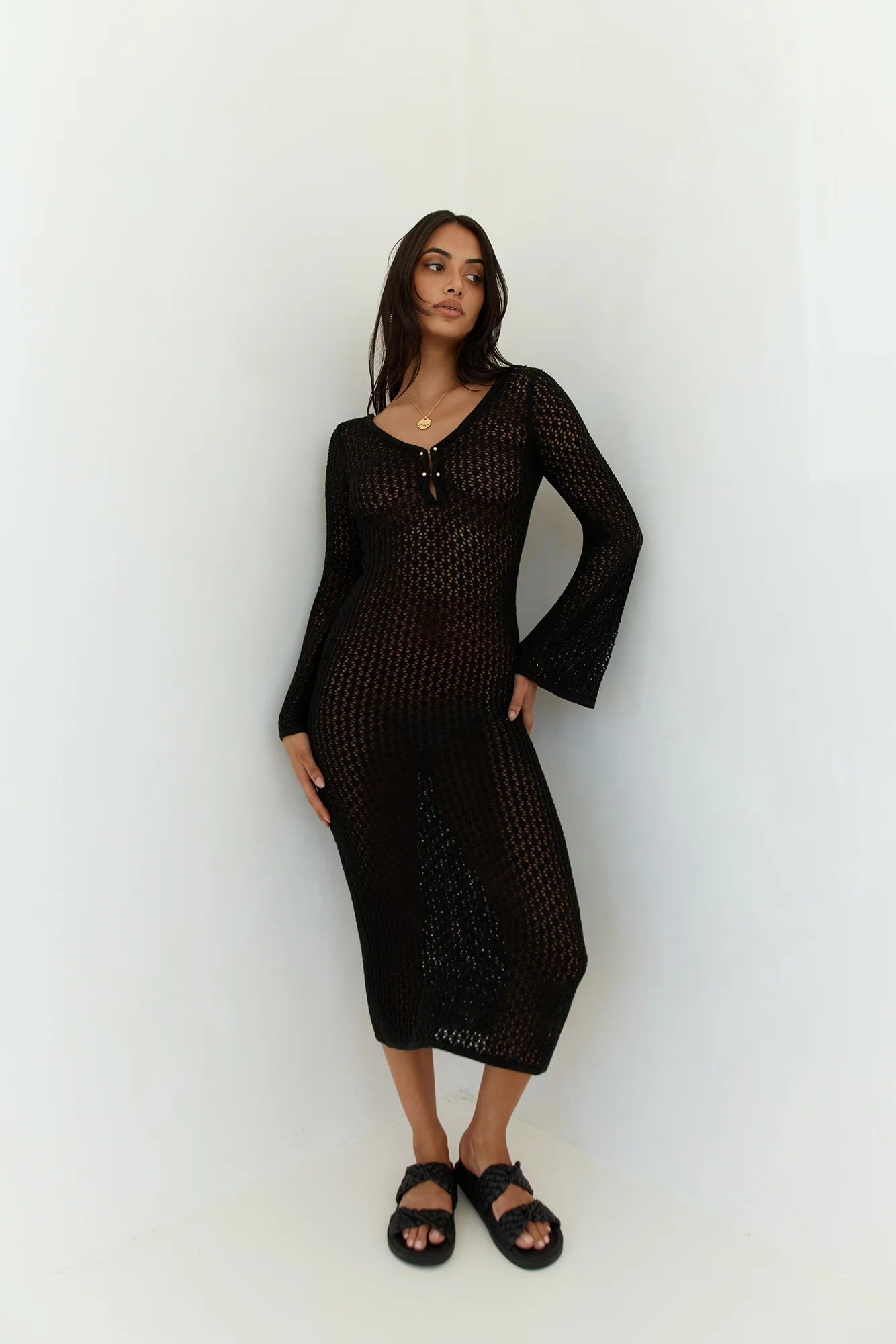 Stylish summer days await in the Sailing Into Sunset Knit Long Sleeve Maxi Dress. Featuring a knit silhouette, long sleeves and an open back. Style with a bikini and slides 'fit of your dreams.