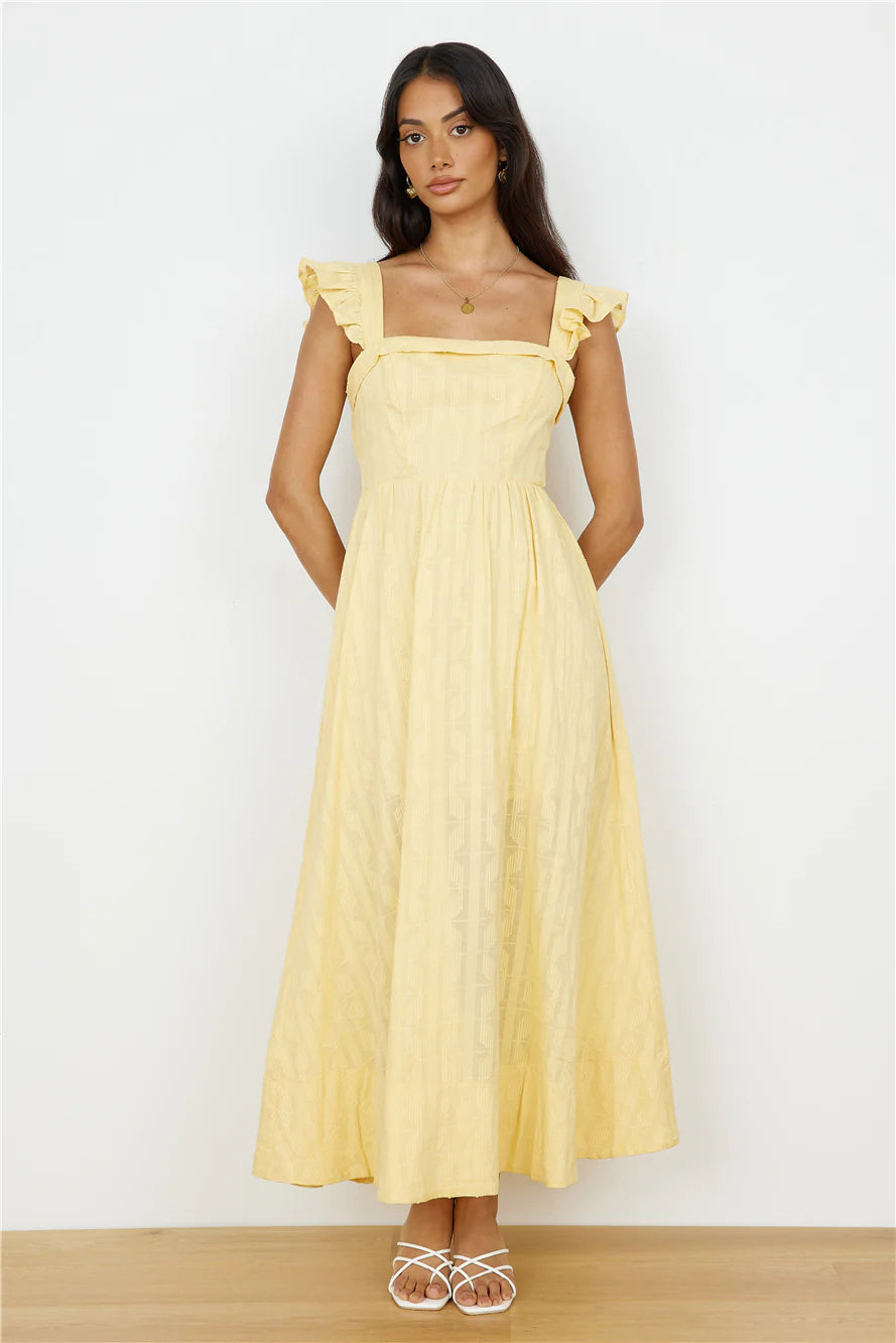 Flow-free like the wind in the Salty Air Maxi Dress in Yellow. Style this dress with white sandals and sunglasses.