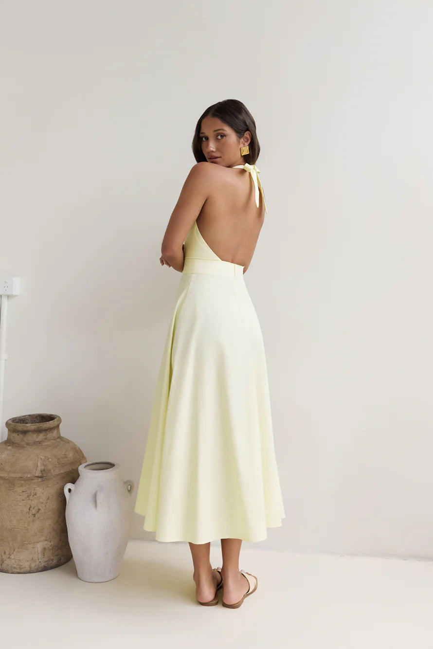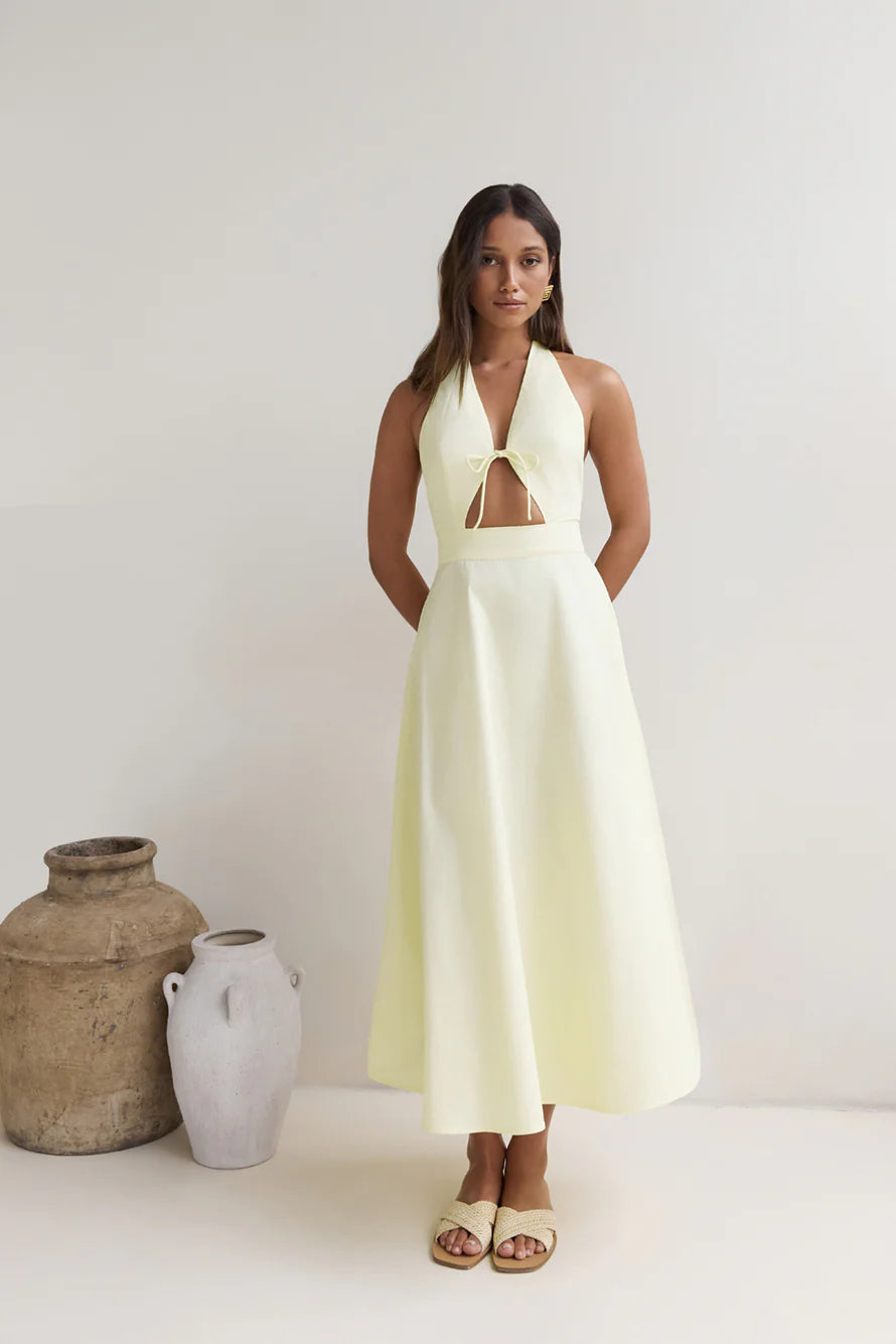 The dreamiest 'fit is here. Be seen in the Sands Of Splendor Halter Maxi Dress that features a gorgeous halter tie, a flowy skirt and a tie to the neckline. Style with mules and gold jewellery for an effortless breezy look.