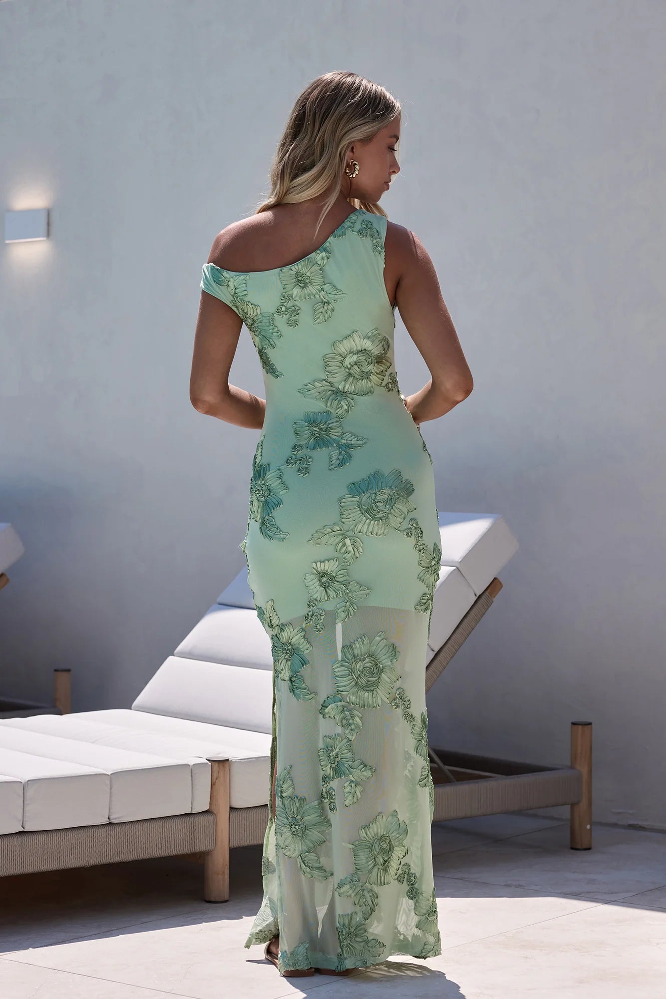 Turn heads in the Scenic Dreams Mesh Off Shoulder Maxi Dress, a statement piece perfect for your next event at sunset. Featuring an off-shoulder neckline, a fitted silhouette, and statement floral detailing to the mesh fabric, style yours with mules and gold jewellery for a bold yet elegant look.