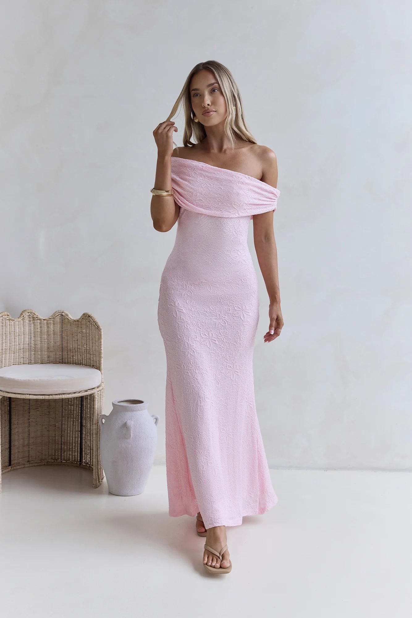 Own every evening in the Sea And Selfies Off Shoulder Maxi Dress. Designed in stretch, textured fabric, this off-the-shoulder style hugs in all the right places before flowing effortlessly for a dramatic, flirty finish. Perfect for parties or any occasion where you want to turn heads and slay the night.