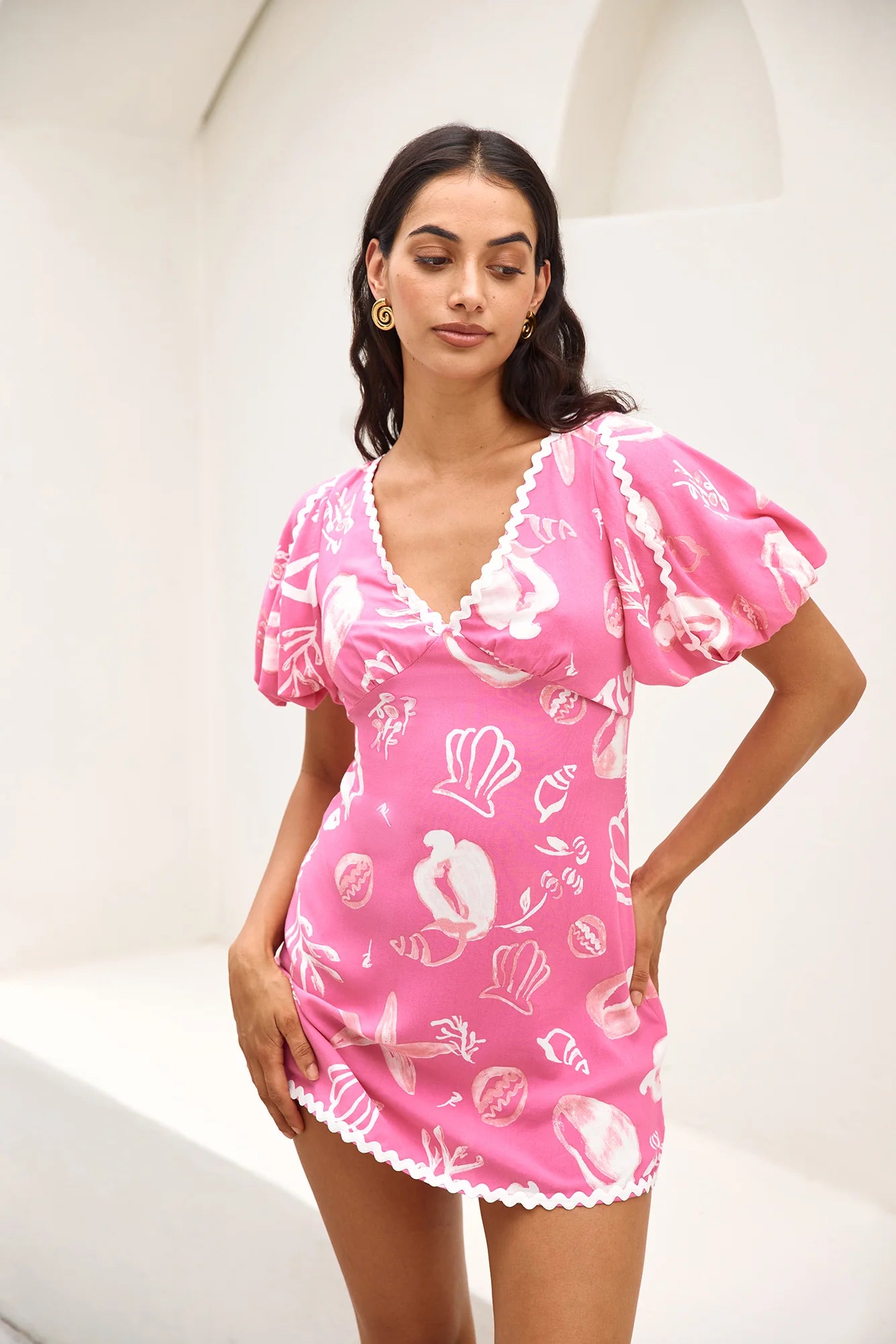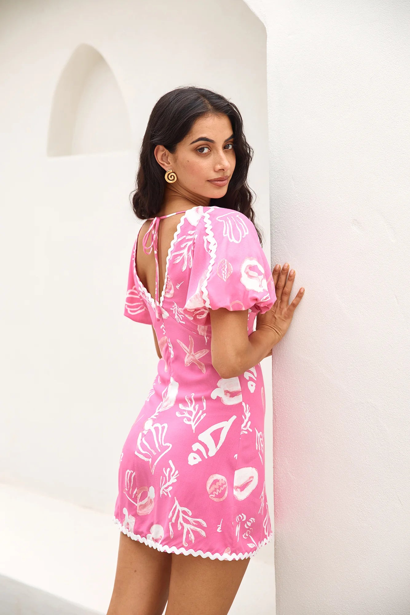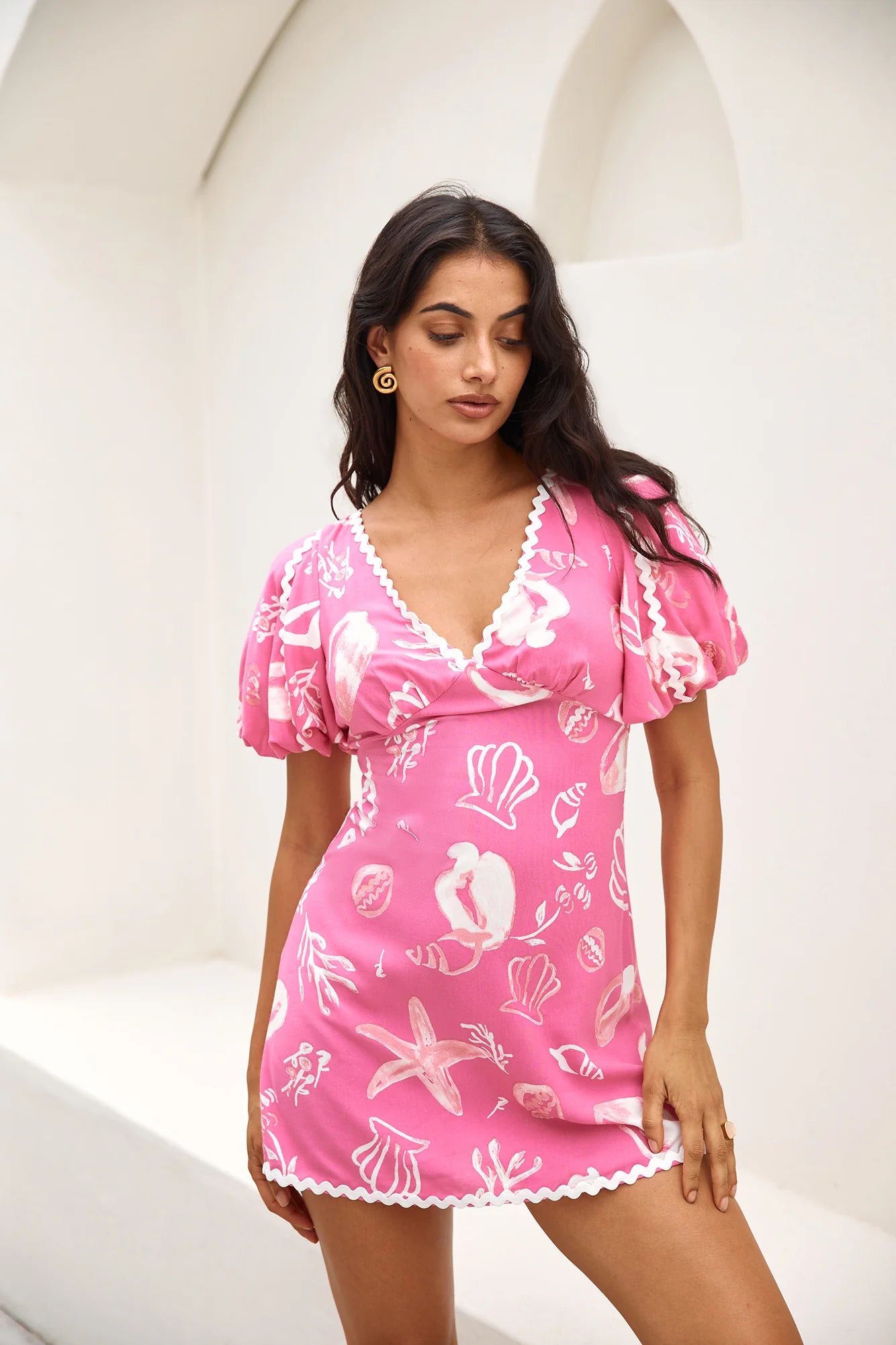 Dive into coastal charm with the Seashell Searching Mini Dress in Pink: a playful ensemble for seaside adventures. Whether combing the sandy shores of the Bahamas or sipping cocktails by the shore in Mykonos, this dress adds a whimsical touch to your beachside escapades.
