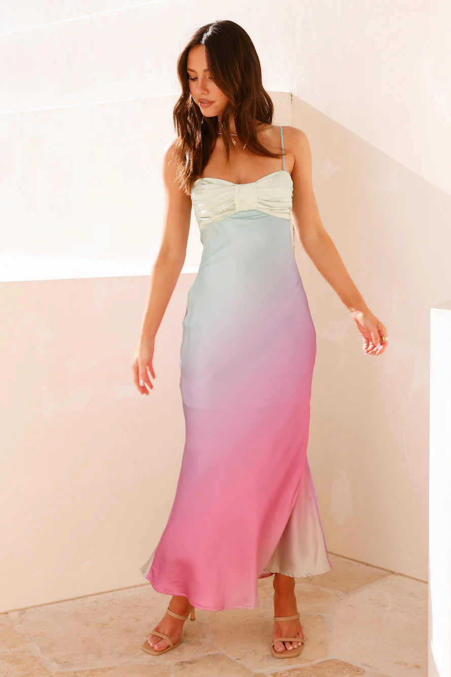 Follow the sun among the seasons in the Seasons Change Maxi Dress in Multi. This beautiful ombre dress adorns a classic fit with a flowy design. Style yours with white heels and loose waves to complete the look.