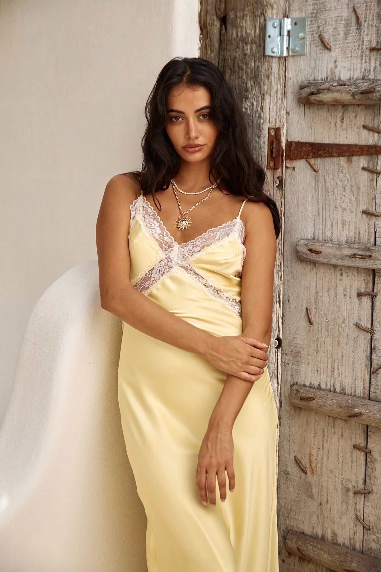 Introducing our Secret Admirer Satin Maxi Dress in Yellow. Radiate elegance and charm with this captivating piece, perfect for romantic dinners or special occasions where you'll leave everyone enchanted.