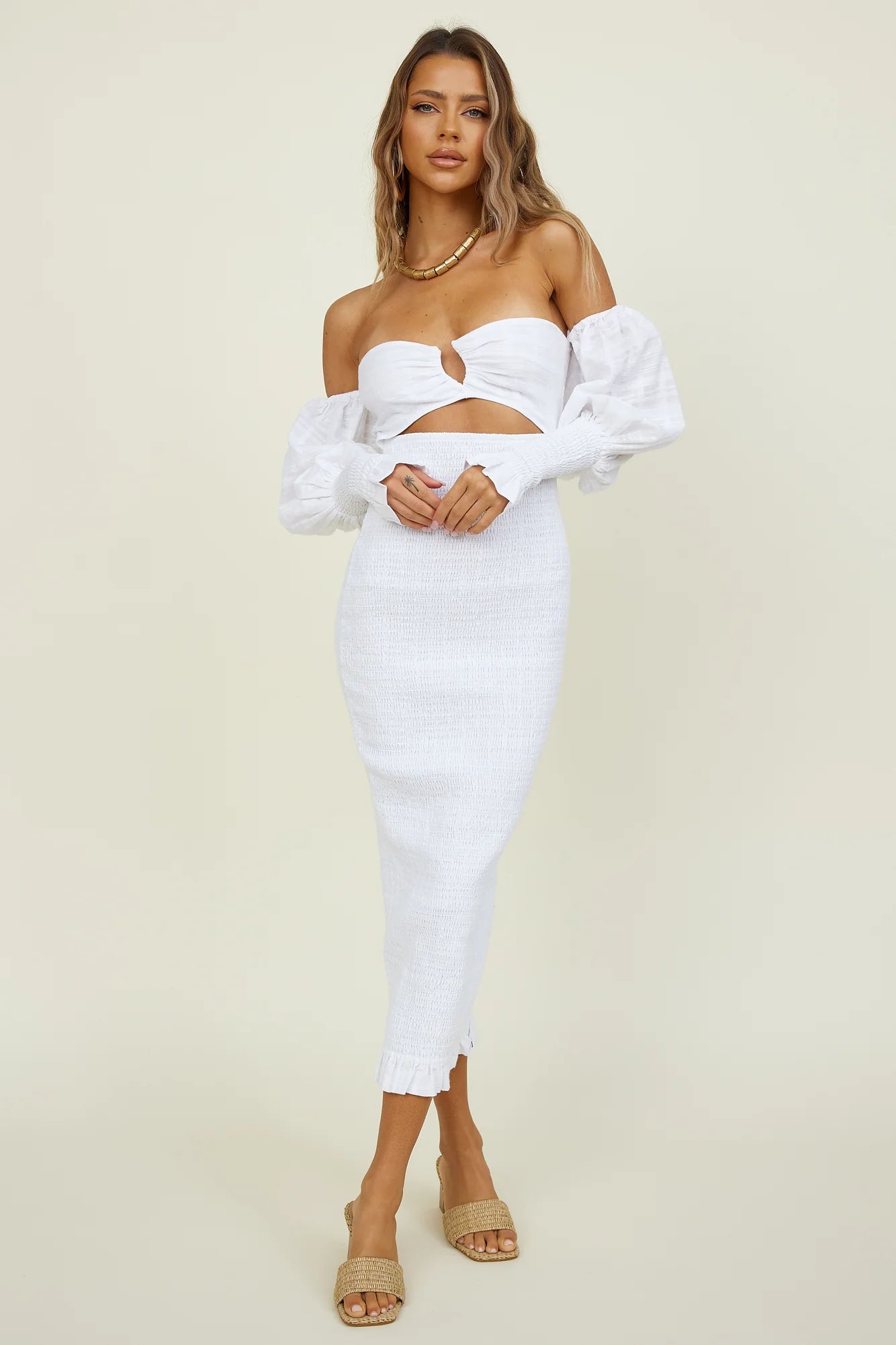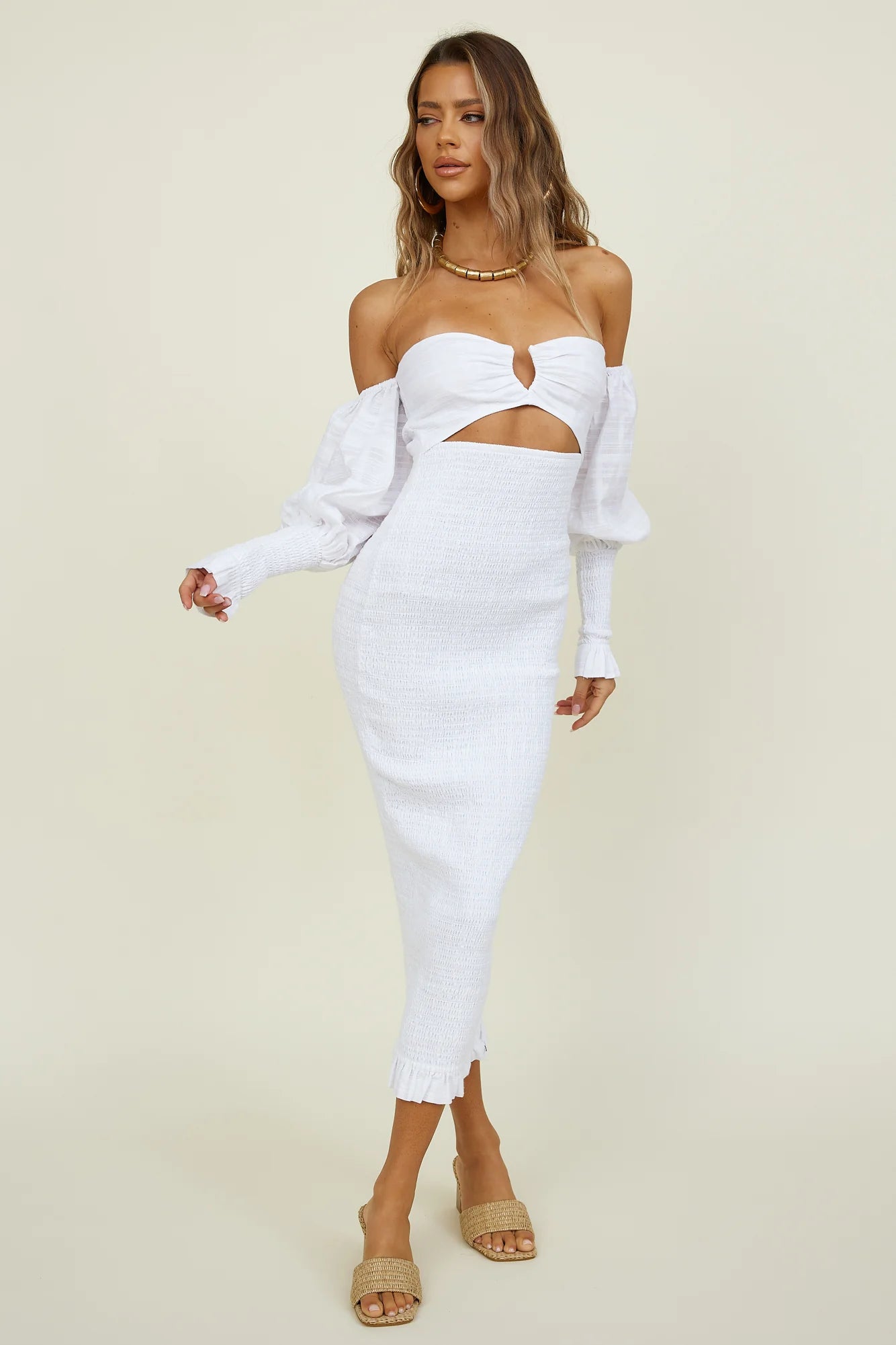 Take a trip to Mykonos and explore what the island has to offer in the Luciano Shirred Midi Dress by SEVEN WONDERS. We'll be styling ours with lace-up sandals and loose curls.