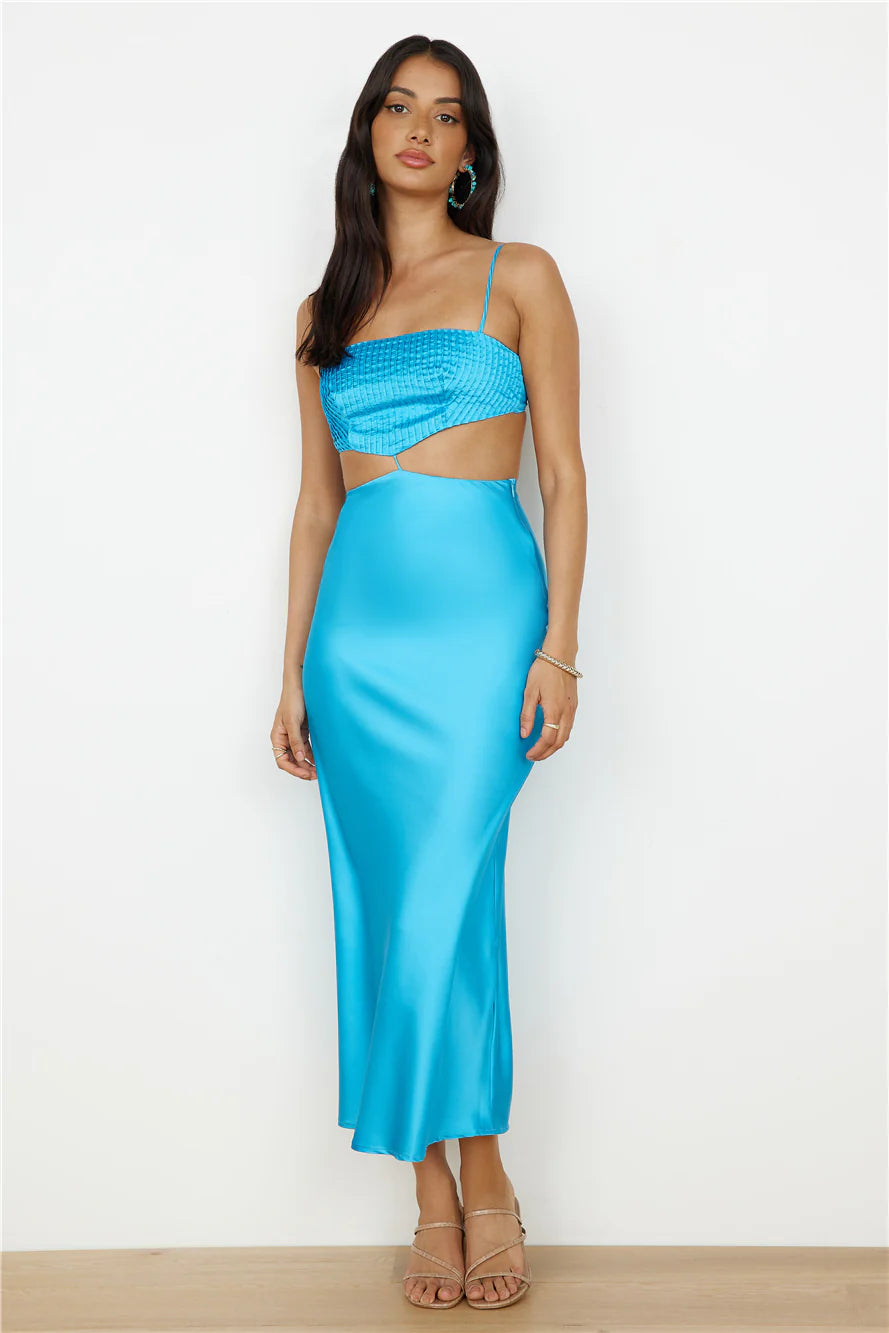 Celebrate and dance along to songs from different corners of the world in the Siren Song Maxi Dress. We'll be styling ours with white kitten heels and wavy hair.