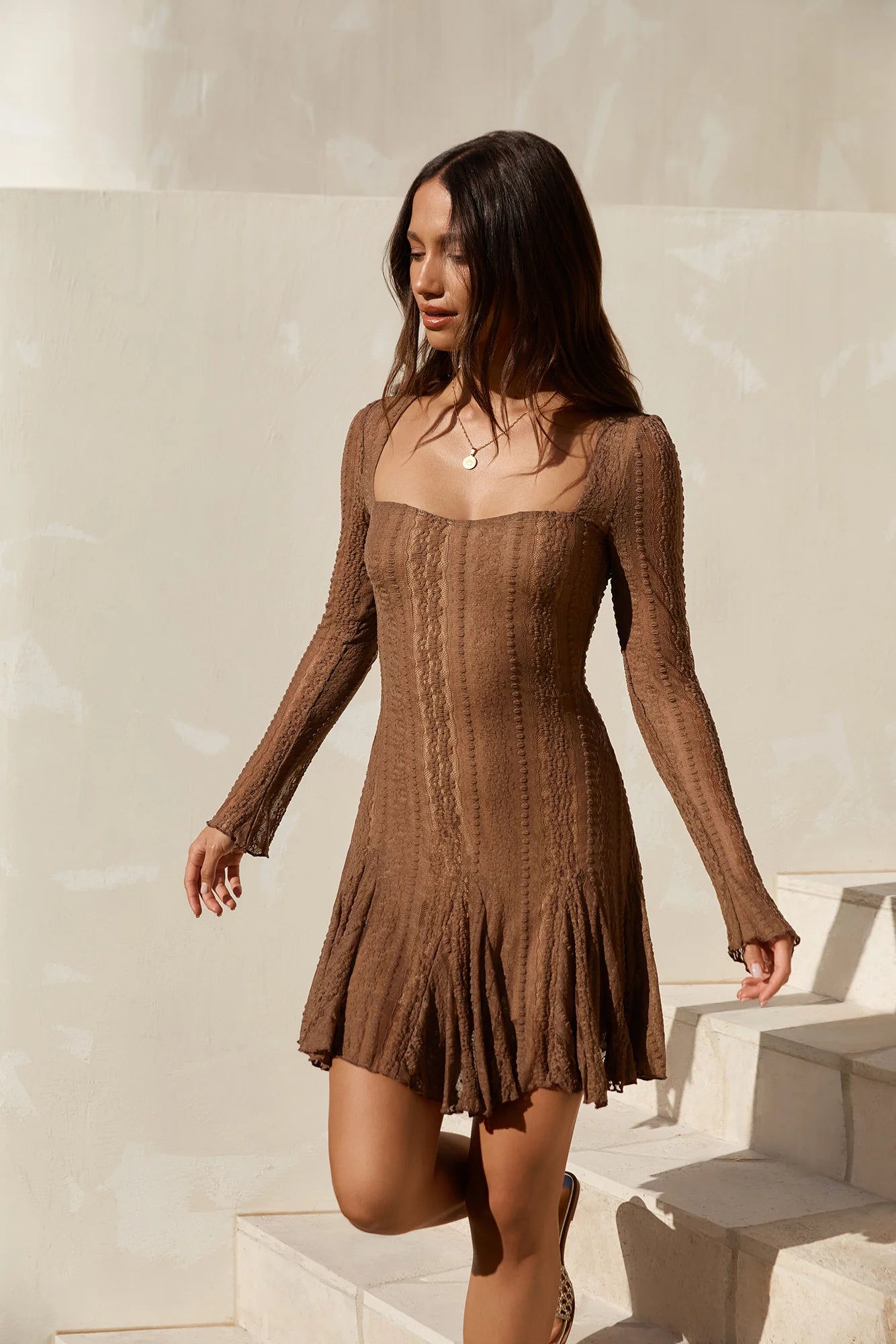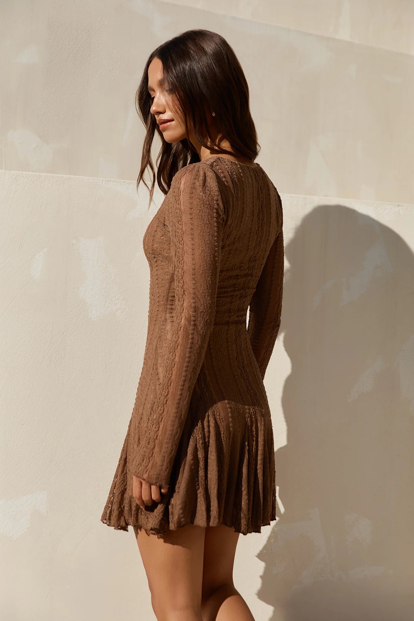 Take it easy and relax under the sun in the Slow Love Long Sleeve Mini Dress, a sweet yet elegant piece made for cool days of fall. Style with flats and gold adornments.