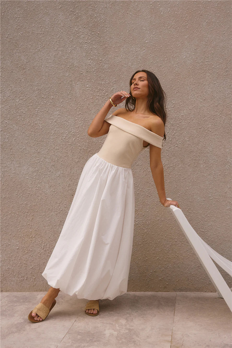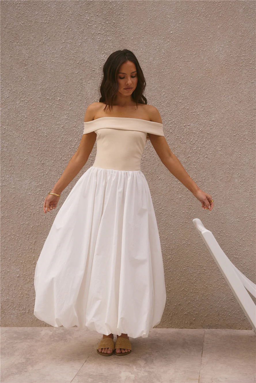 The Sophisticated Nights Bubble Hem Maxi Dress in White is the epitome of elegance, featuring a flowing silhouette and chic bubble hem design, perfect for making a statement at summer evening soirées. Embrace timeless sophistication and turn heads with every graceful step in this stunning dress designed for unforgettable nights.