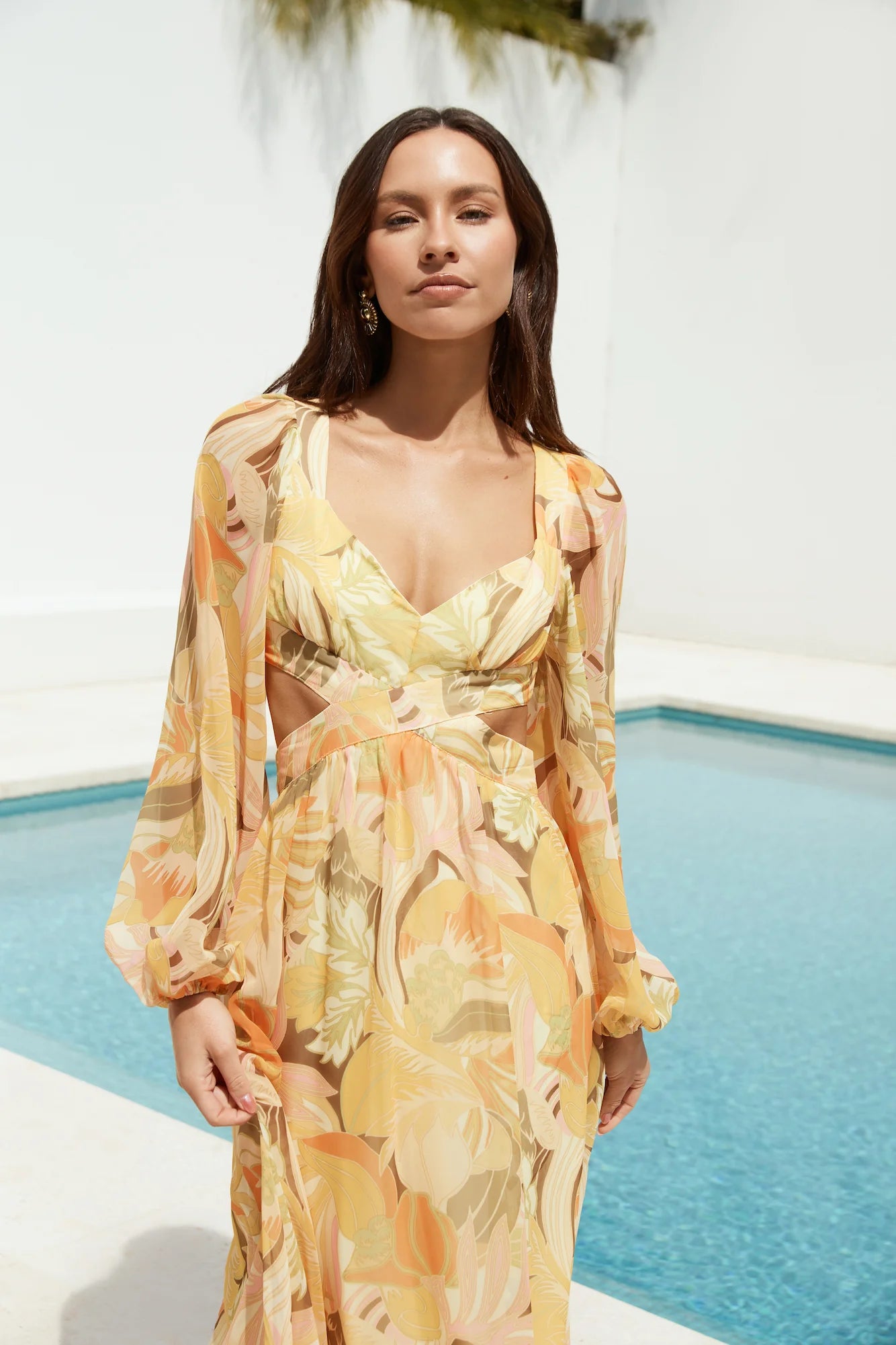 Enjoy a moment under the clear skies in the Starlight Blooms Long Sleeve Maxi Dress, a flowy and feminine style made for the cool days of spring. Style yours with a low block heel and soft waves for the perfect celebratory look!