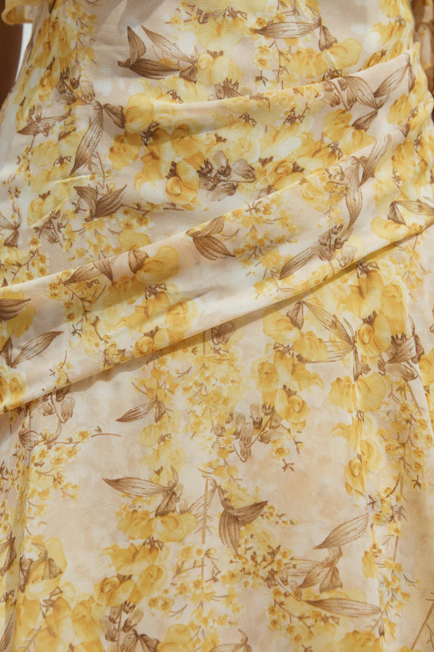 Imagine wandering through a sun-drenched field bursting with blooming flowers, each petal a vibrant celebration of summer. The Summer Blossoms Maxi Dress in Yellow captures this cheerful spirit, making it the perfect companion for sunny outings and garden parties.
