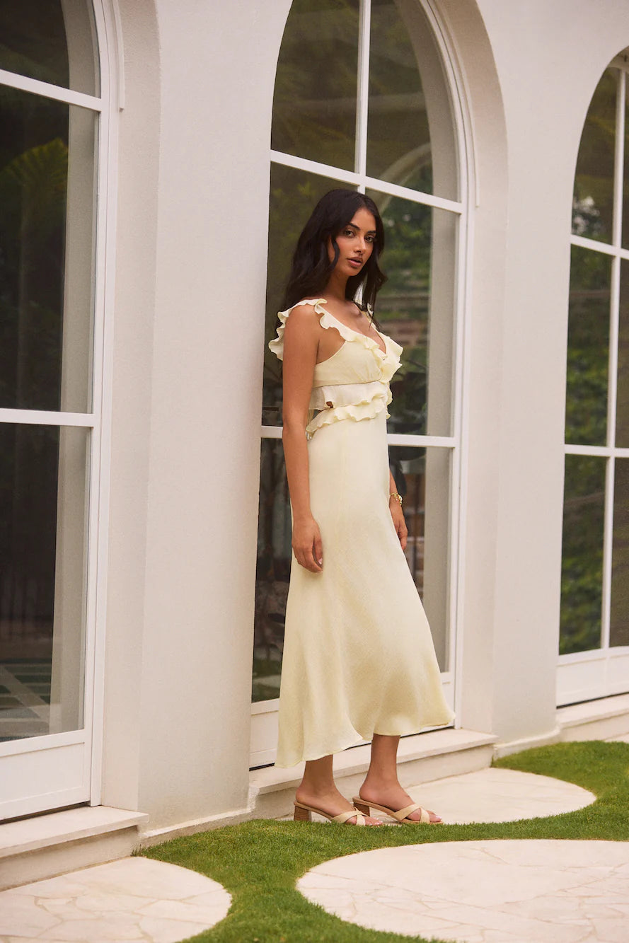 Be swept away to an enchanted land in the Sundream Maxi Dress! A whimsical design with a romantic silhouette, whether you wear it to a special event or simply as a stylishly casual everyday look. Style yours with gold adornments and loose wavy hair!