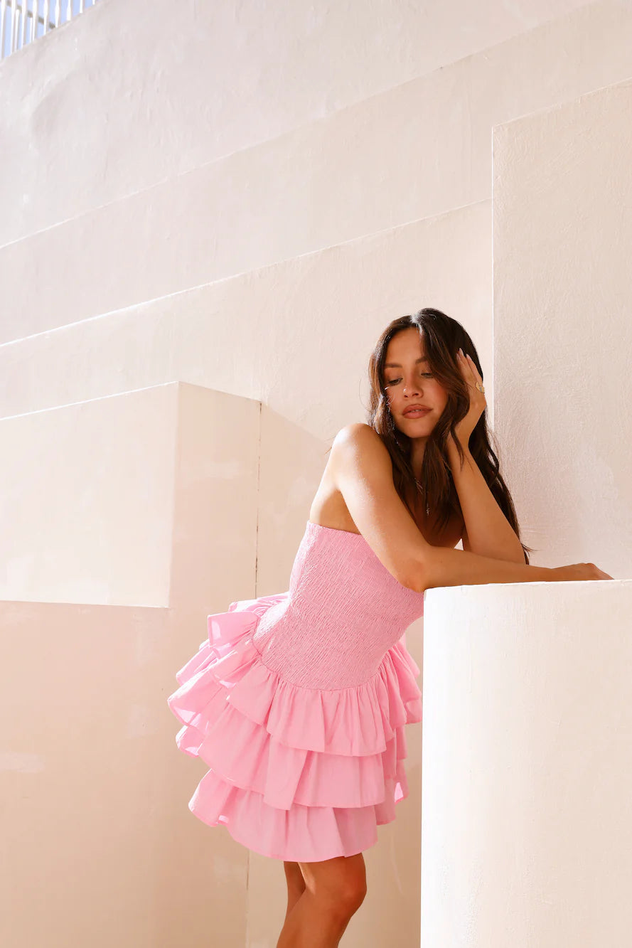 Capture the magic of a tropical sunset in our Sunset Dreams Strapless Mini Dress in Pink, perfect for evening beach walks or dancing under the stars in Bali. With its vibrant hue and flirty silhouette, this dress is your go-to for unforgettable summer nights.