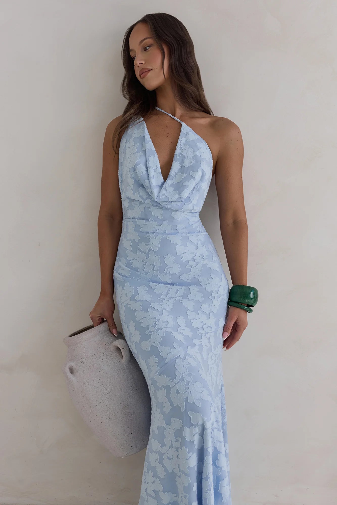 Drift into dreamy coastal vibes with the Tales From The Riviera Maxi Dress Blue. Crafted from textured stretch fabric, this flowy maxi features a graceful cowl neck and a chic ring detail at the back, adding just the right touch of effortless elegance. Perfect for seaside strolls and sunset soirées, it’s the dress that tells your next getaway story.