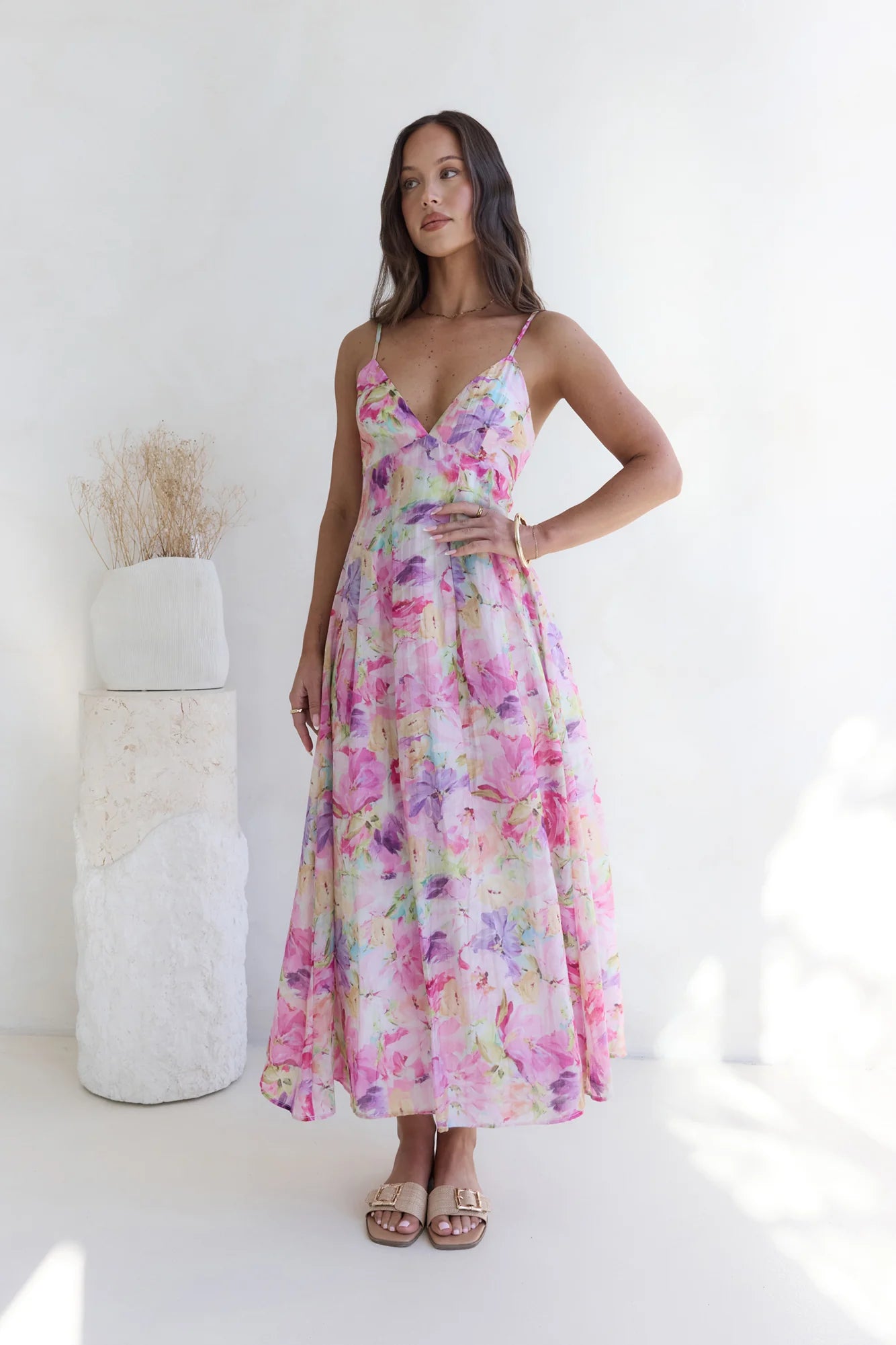 The Tides of Colour Midi Dress features a flattering V-neck, a flowy silhouette, and a vibrant print, perfect for adding a touch of colour to your wardrobe. Pair it with minimal jewellery and sandals for an easy, breezy look!