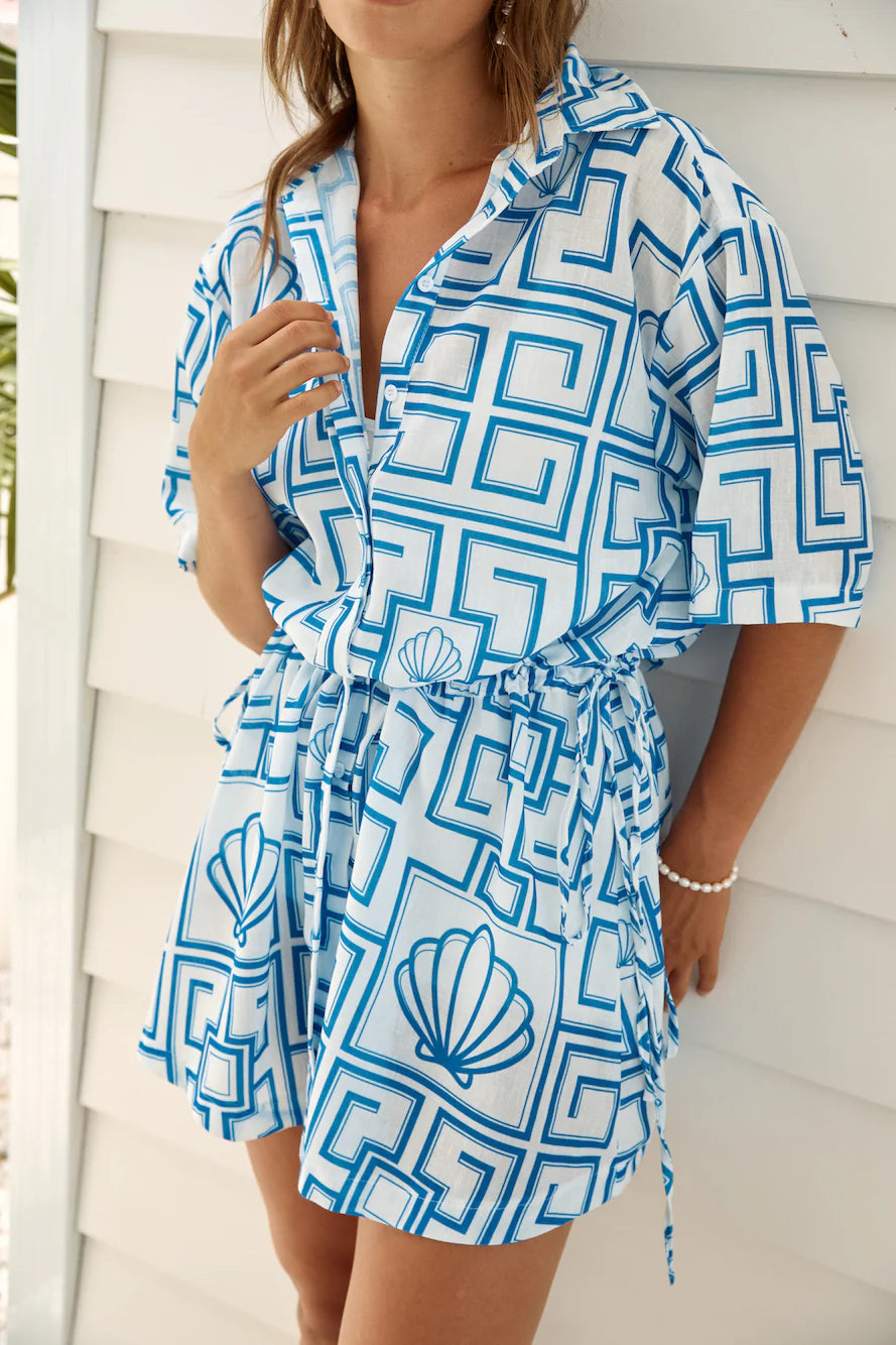 The Treasured Dreamer Mini Dress in Blue is a fun statement piece for your next holiday away. Style with tan sandals and loose waves to complete the look.