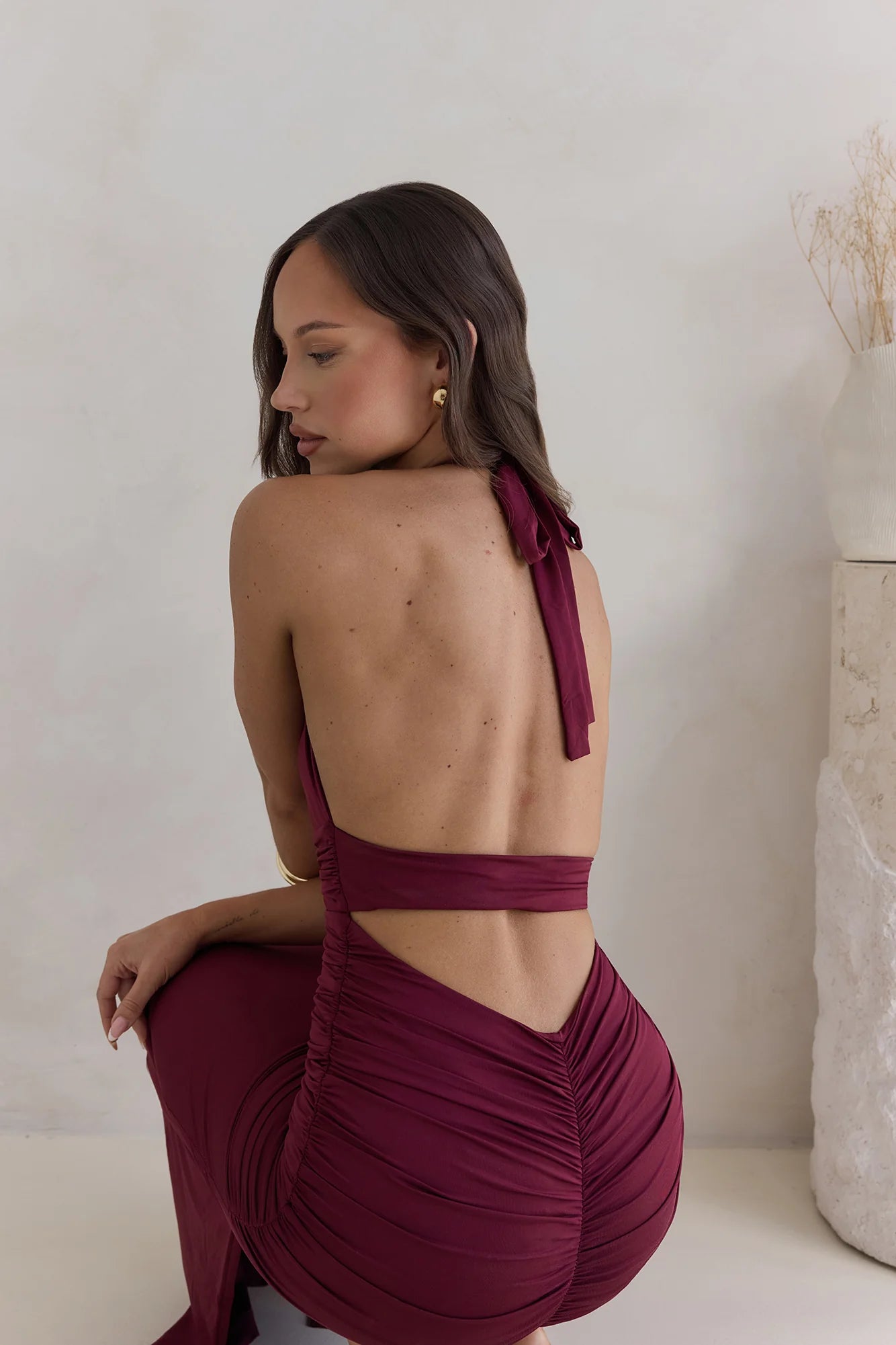 Turn heads in the Under The Stars Halter Maxi Dress, a stunning piece perfect for drinks at sundown. Style with mules and gold adornments.
