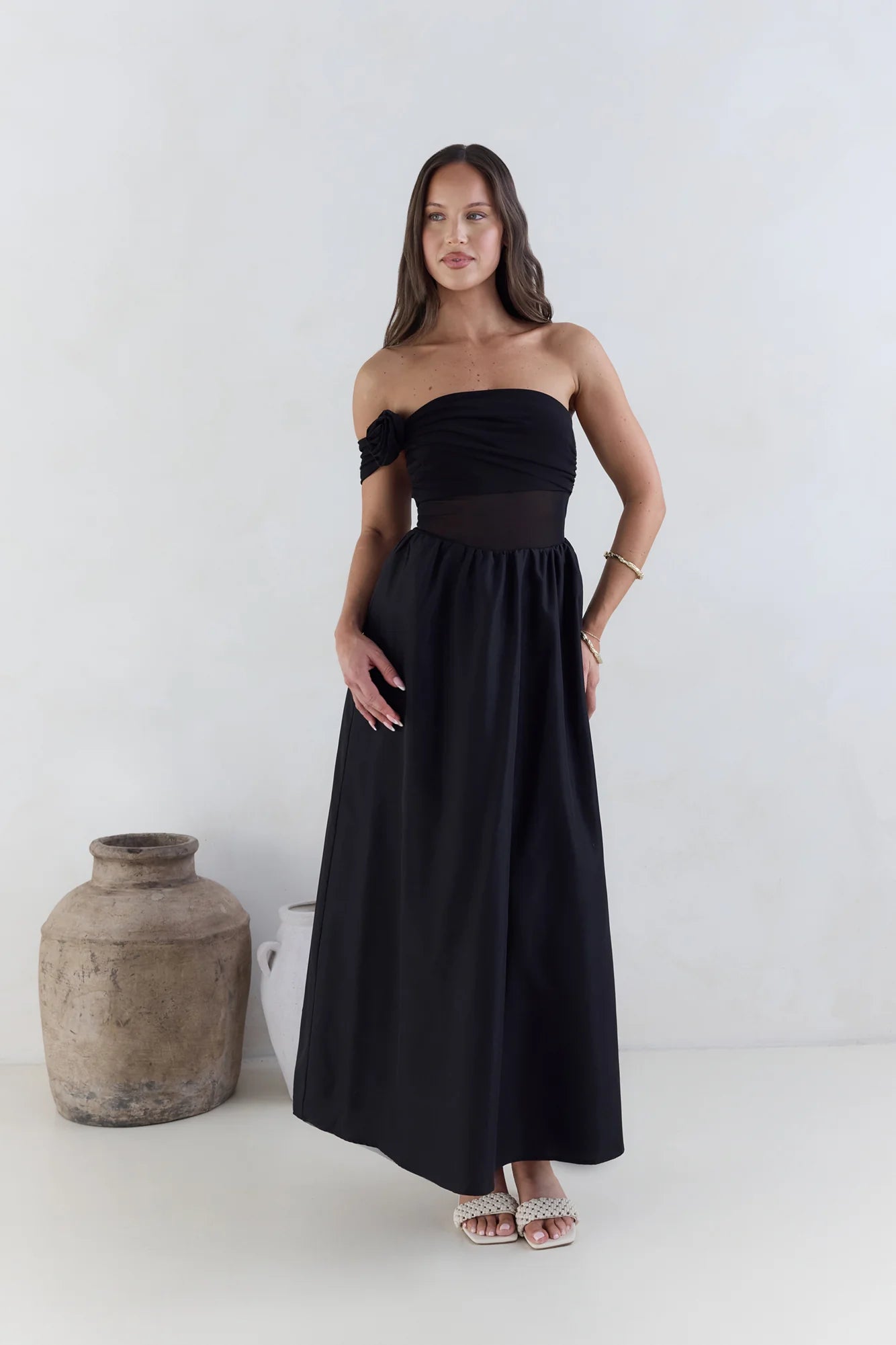 The Wish List Getaway One Shoulder Maxi Dress is made to captivate. With a sheer, figure-hugging bodice adorned in soft floral appliqué and a flattering one-shoulder neckline, it blends romance with modern edge. The stretch fit keeps things comfortable, while the flowy skirt adds movement and drama. A must-have for the moments you want to feel unforgettable.